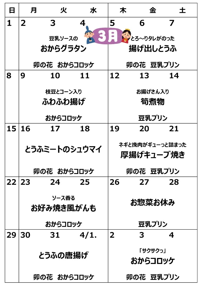 とうふ屋らしく、【とうふ】や【おから】を使ったお惣菜を作っています。家族団欒の食卓に、疲れた日の夕飯に、もう一品追加のおかずとして、役立てるようがんばります!数量限定のため売り切れの際はご容赦ください。
